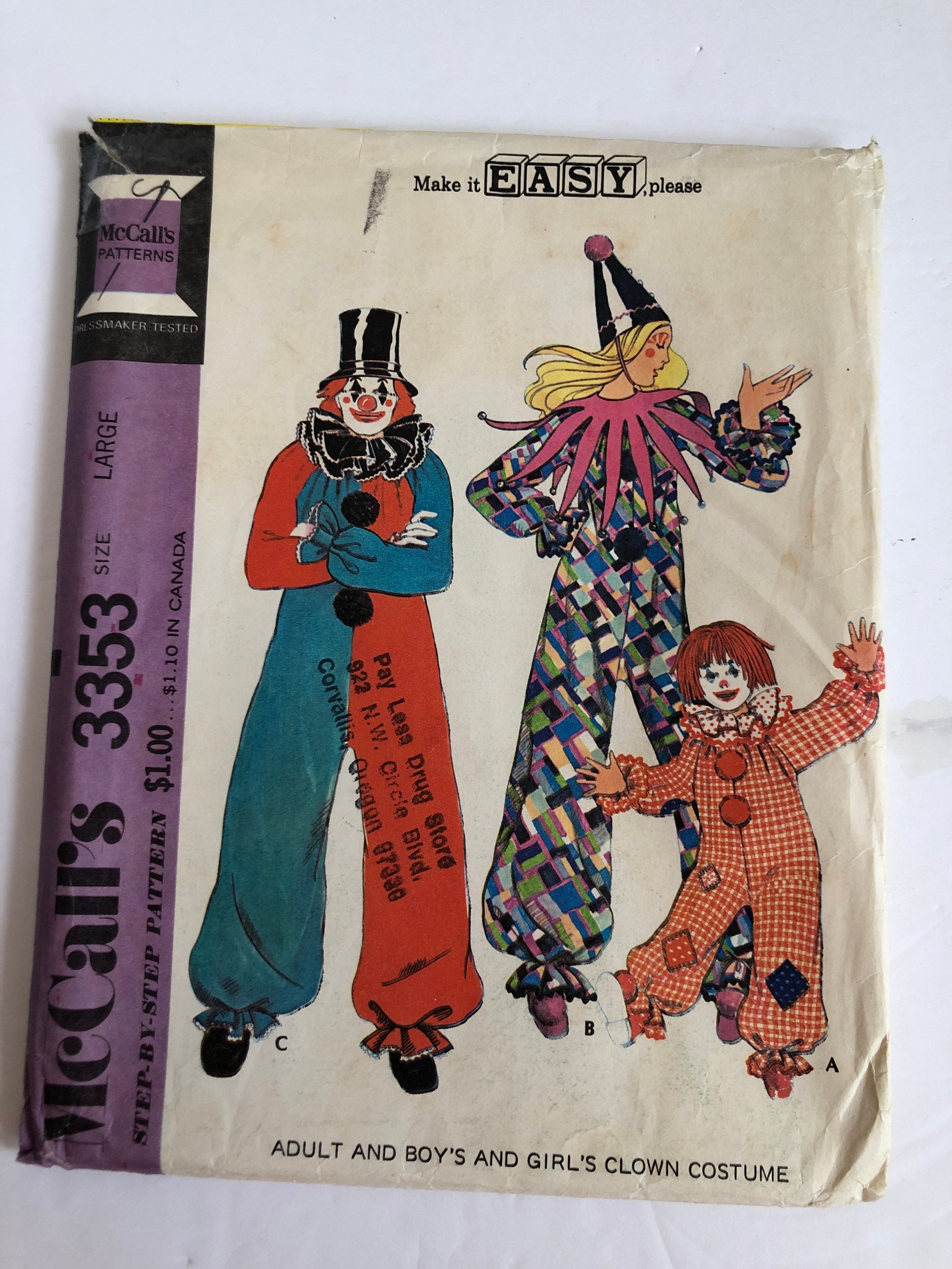 Clown Costume Pattern Mccall S 3353 Adult Small 32 34